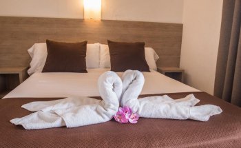 És com estar a casa, un hotel familiar amb un tractament molt proper i atent, habitacions netes i àmplies, ascensor i un menjar ràpid molt casolà amb productes de qualitat. El cuiner, que és el molt bo i atent animador, a Josep, sempre prestant atenció als detalls i al benestar dels clients. Al bar hi ha Sofia i Chema molt professionals i atents. Et felicito, ets un gran equip.