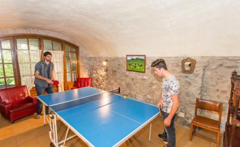 La casa posseeix un ambient acollidor i familiar, amb habitacions àmplies, moltes d'elles amb bany privat, i zones comunes ideals per gaudir en grup, incloent un jardí i sala de jocs per a nens. Aquest espai és perfecte per a grups grans, ja que pot albergar fins a 18 persones.