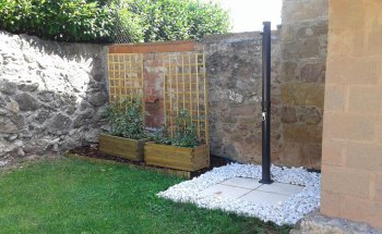 Molt bona casa i propietaris simpàtics i simpàtics (viuen a la mateixa granja). Bona piscina on el sol brilla i té una gran habitació amb moltes joguines per jugar amb els nens. Per dir -ho menys, té moltes escales per arribar a les habitacions.