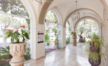 Hotel molt net, un palau molt bonic! Configuració perfecta amb bonics jardins i bougainvillea que puja a les façanes del palau. Piscina amb bar on se serveixen bons còctels Prévoir: proporcioneu un para -sol per gaudir més! Accés a la platja i al centre de la ciutat directa, uns 300 metres, però una mica fort a la piscina. Esmorzar i sopar bufet generós, il·limitat i variat. Ampli habitació de 40m2 amb balcó i jardí privat. Els punts forts: neteja, comoditat, wifi i aparcament gratuït protegit ... No cal moure el cotxe de tota l’estada, excepte si necessita particular. Només desavantatge: casa freda!