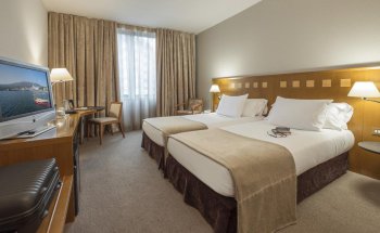 Hem utilitzat una habitació doble molt espaiosa i neta. Potser el pitjor de la sala era la seva orientació cap a un pati interior, però no és una informació realment important. La nostra habitació tenia una televisió amb molts canals i una bullidor per fer cafè o te a l’habitació (un bon toc). El personal de l’hotel ens va mostrar una atenció meravellosa. Fet important: estar a l’hotel us donen un descompte a l’aparcament (que podeu entrar des del propi ascensor de l’hotel).