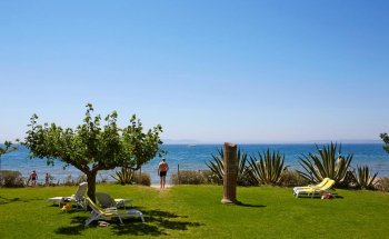 Hotel with a wonderful terrace with lawn on the beach where you can sunbathe looking at the sea.