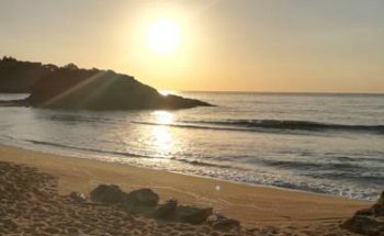 It's a pretty beach. You can take the round road that is very cool. In early April it is quiet and there are only people practicing surfing.
