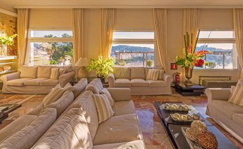 Friendly welcome, beautiful hotel construction, magnificent living room, sea view, swimming pool, garden, absolutely to be redone next year!