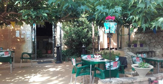 Country house near Figueres with a very nice terrace. Fantastic fork breakfasts of bread with tomato and sausages with grilled sausage, potatoes and drink for 10 €. To repeat