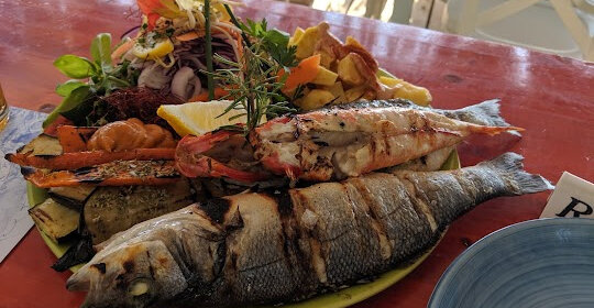 Food from the garden next door, fresh fish, all very tasty, at a good price, in an unbeatable place. I would go back to the cove just to eat there.