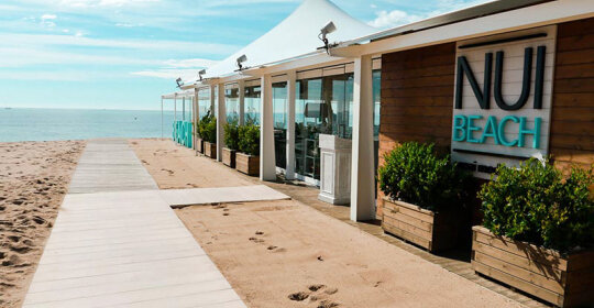 Nui Beach Calella A beach bar with sun loungers and excellent service. It is a safe place even in times of covid, as they take all precautions very seriously. The chiringuito does not have walls, so it is more of a well ventilated covered terrace (in winter they raise plastic walls and it is heated). They have tables on the sand as well and many loungers with umbrellas and tables, as well as various services and a paid car park next door and a free one nearby. Everything always clean and disinfected, maintaining the safety distance between tables and loungers. The food is very tasty, well prepared and presented and is served even on the sun loungers, which is a real luxury to eat or drink in our chosen place, watching the sea ... Among the drinks it is worth mentioning the cava sangria and among the desserts the White coulant (white chocolate with dark chocolate ice cream) - it is exquisite! The waiters are very friendly and attentive, good value for money. It is a very recommendable place.