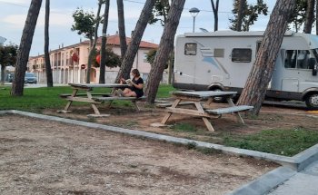 Camper area located in the center of the town, very quiet, in a tree-lined area. Easy access, with all services and free of charge. Very close to shops, thermal centers, supermarkets, bakeries within walking distance. The spots are spacious and flat. Congratulations to Caldes de Malavella for having such a well-located, well-made camper area with all free services! We will definitely come back!!