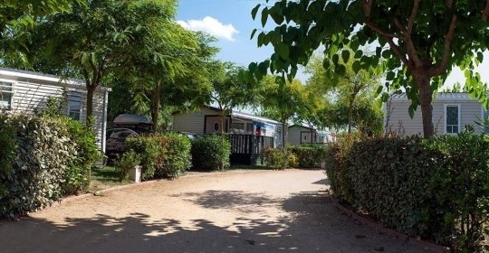 Family camping, not very large, with bungalows and caravans. You can stay with a caravan from March to December. It has a swimming pool, football field, petanque, and restaurant.