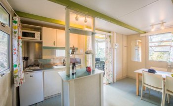 Very nice and quiet campsite, there is direct access to 3 very nice and quiet coves and two slightly larger beaches; the staff is very friendly, the supermarket has good prices and plenty of variety; the bungalow is quite "simple" but clean and equipped with all the necessary;