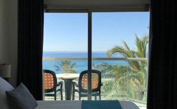 Stunning sea views from the upper floors, very clean, cozy rooms, breakfast in the hotel building, not very varied (but the churros are unreal!), The restaurant outside (very tasty and expensive), awesome hot corrugations , the location is convenient - on the first line beach, next to the city hall, right there - a bus stop, including a pick-up transfer, 10 minutes to a supermarket and a beautiful vintage carousel, and the market aisles just a stone's throw away. Cons: wi-fi is almost dead (6th floor, September 2017), paid safe, chlorine smell, unobtrusive in the room after cleaning, very unpleasant on dishes in the breakfast area. Overall a very good experience. Take the sea view - you will not regret it!
