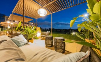 The hotel features several outdoor pools that invite visitors to enjoy a refreshing swim surrounded by a beautifully landscaped environment. Each room is spacious and comfortable, tastefully decorated, and equipped with all necessary amenities, including private terraces that offer views of the gardens.