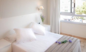 Experiencia fantástica: La ubicación: está al lado de la estación de autobuses y el ayuntamiento / oficina turística. A menos de 10 minutos a pie del paseo marítimo y a 3-5 minutos del área del restaurante. La habitación en la que nos alojamos era tranquila y pacífica (no se puede escuchar el tráfico) y la cama era muy cómoda. Tiene una tetera donde puede calentar agua e infusiones / café. El baño tiene un secador de pelo. Una ventaja es el área de desayuno, con generosas horas de 8 a.m. a 12 p.m., para durmientes. Durante una buena parte del día, se puede usar como área de lectura: hay una pequeña sección de libros disponibles. El desayuno es muy bueno, bastante variado (no exagerado) y tiene un poco de todo: dulce, salado (tortilla, tocino, etc.), frutas de temporada, cafés, jugos, etc. También tiene una piscina pequeña (muy pequeña), Solo adecuado para enfriar (los niños pequeños pueden nadar un poco) y algunos tumbonos para tomar el sol. Tiene una cafetería adjunta con largos horarios de apertura, donde puede tomar café o comer algo rápidamente y a precios muy bajos. En resumen, un lugar excelente, limpio y tranquilo para pasar su estadía, con un personal muy atento.