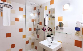 Un hotel fantástico. La recepción está abierta las 24 horas, por lo que no hay problema a la llegada. Puede tomar café, té o cacao sin cargo las 24 horas del día. Teníamos una habitación accesible para discapacitados con mucho espacio. Baño grande con ducha a cine. Simplemente sobresaliente. Se recomiendan hoteles B&B en toda Europa. ¡Una gran relación de precio-rendimiento! También puede obtener un 10% de descuento en el consumo en algunos restaurantes cercanos como visitantes de B&B. Puede obtener una lista de estos restaurantes en la recepción. Si eres un buen comedor, también puedes recomendar el "buffet libre" en el edificio vecino.