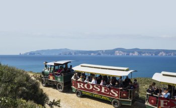 Un tour sur le Rosas Express est l'une des excursions préférées des enfants chaque année. Vous pouvez profiter d'une vue magnifique sur la baie de Rosas, les falaises et les petites baies et vous apprenez à connaître Rosas d'une manière différente. Le coup de sifflet typique, les explications en allemand, en anglais, en français et en espagnol, ainsi que le personnel amical termine la tournée!